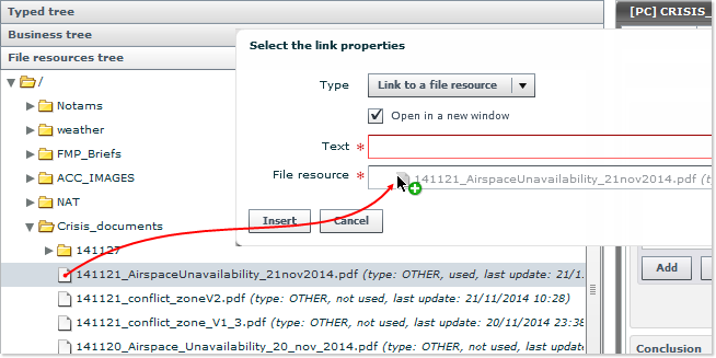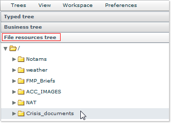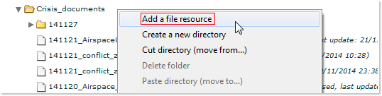 Click on the File resources tree button (the third one featured in the left navigation column) and locate the desired folder - probably the Crisis_documents folder: