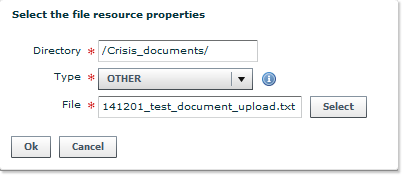 - The File field prompts you to browse the files present on your local file system (from your computer hard disk or any network drive to which you have access) - confirm your choice by clicking on the Select button