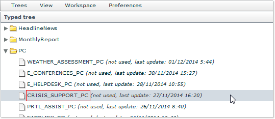 Click on the Typed tree button (the first one featured in the left navigation column), locate and open the PC folder, and scroll until you locate the CRISIS_SUPPORT_PC icon:
