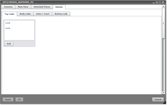 Note: The Crisis Management Portlet is indeed of the Linklist type. Please refer to the WIND > The WIND Portlet Configuration (PC) > Types of PC > Linklist section of the WIND Help / User Manual for additional information on the different types of Portlet Configuration (PC) elements.