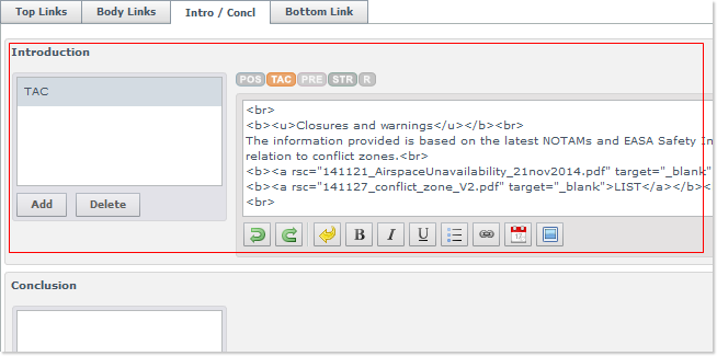 For the time being, the whole content of the Crisis Management Portlet, as it is displayed on the NOP, is managed in this single tab - more precisely in the first Introduction pane: