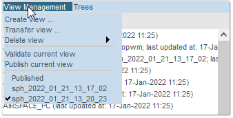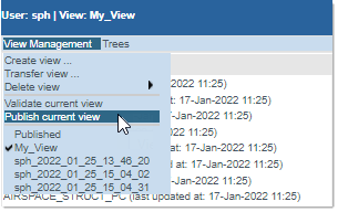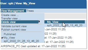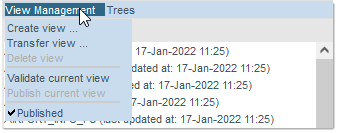 By default, the View Management menu proposes the commands as shown above, with the Delete and the Publish current view command greyed out (not available) since, by default, there is nothing yet to delete or publish at this stage.