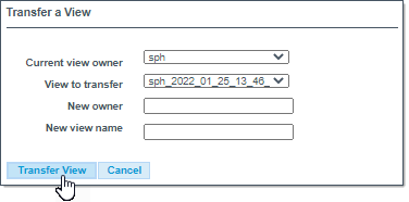 This enables you to select and Transfer a View from a given owner (the user with which the view was created) to another user.