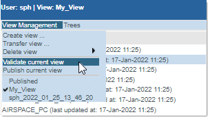 Click on the Validate current view command: