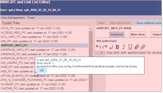 When errors are encountered, they are identified and listed in this other dialog, against a red overlay: