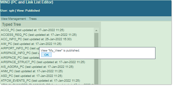 ... and the just published view is removed from the list, and the application switches to the Published view, which now contains the latest changes: