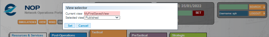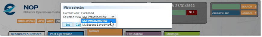 For this example, we have selected for you the view MyFirstSavedView and clicked on the Set button. It is easy to check which is the view currently in use by clicking again on the View button in the header.