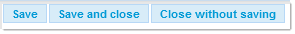 The Save button will save the changes made to the document being edited - the Save and close button does the same, and in addition closes the entity.