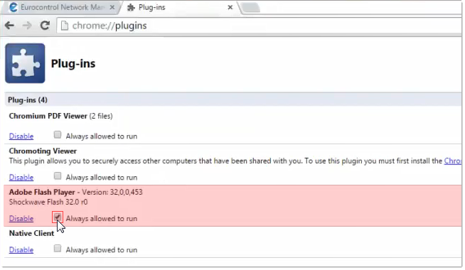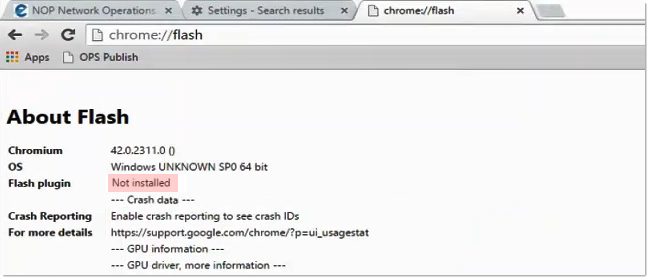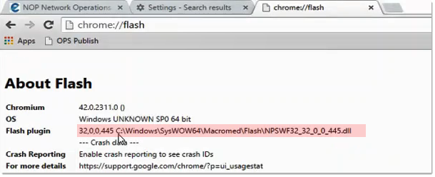- Enter chrome://flash/ again and check the Flash plug-in entry. It should now show the path of the Flash player file path: