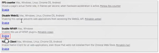 - Click on the Enable link and restart the browser. Ignore possible error messages.