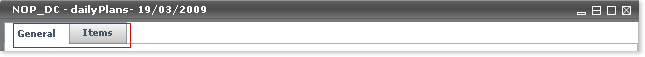 Once opened, the Daily Plan edit window shows two tabs: General and Items, further detailed in the next sections.