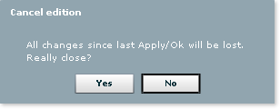 - Cancel: closes the active window without keeping the changes made. This action brings up a dialog box asking you to confirm the cancellation: