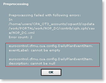 If the data is incorrect, an error message tells that the preprocessing has failed, and gives as much indication as possible on the cause of the failure (framed in red in the example below).