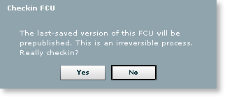 This action combines a number of commands. First of all, it reminds the user that the last saved version of the FCU is about to be Prepublished. It is therefore of importance to first Save the changes made.