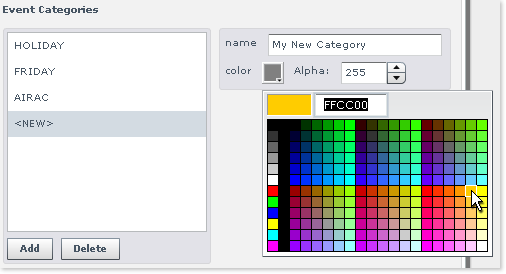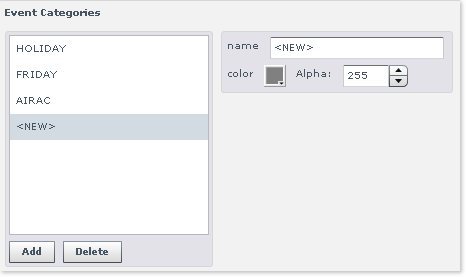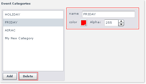 Editing an Event Category is a simple process - just click on its name to access the configuration palette as highlighted below: