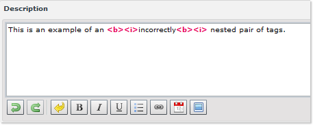 Notice how the <i> tags are correctly nested within the <b> tags. This gives the following sequence:
