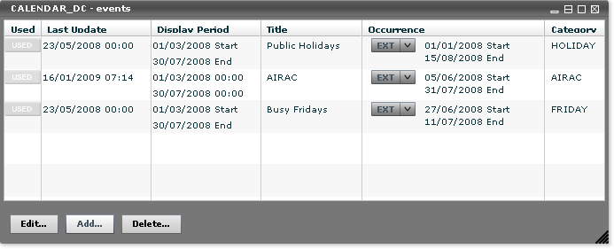 Each of these actions opens the relevant event in the edition mode, as shown below:
