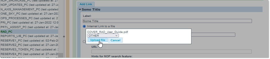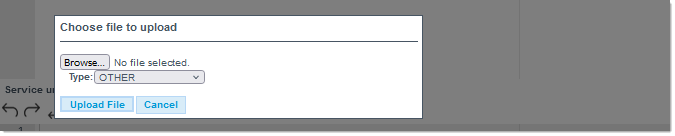 You will then be prompted to Browse for the file to upload, and specify its Type by means of a dialog: