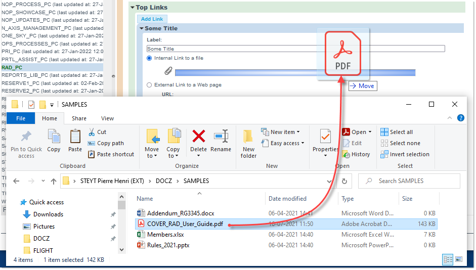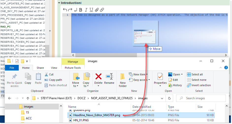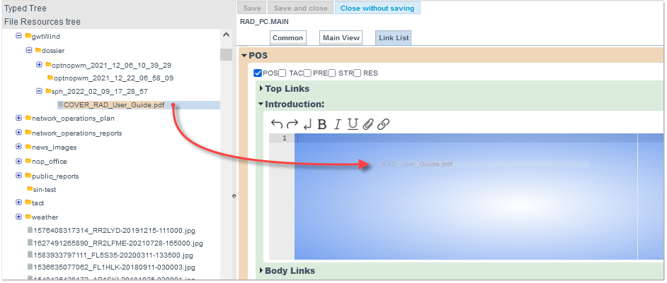 Another method to add eternal files to a text is by drag-and-drop, either from your file system ...
