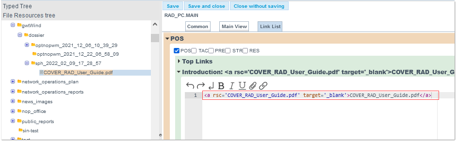 To add a file resource from the tagged text editor, first click on the Insert File Link button: