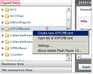 - Locate the folder corresponding to the type of document you are about to create (in this example, ATFCMEvent)