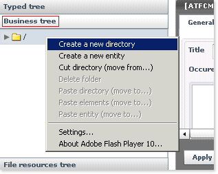 - Select the Create new xxx" command (xxx being the type of item) from the contextual menu