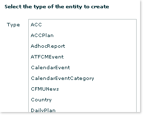 - Select the type of document from the Select the type of entity to create list: