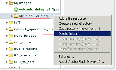 Deleting a Directory is even simpler - locate the folder to suppress in the File resources tree, right-click on its name or icon and select the Delete Folder command from the contextual menu: