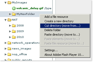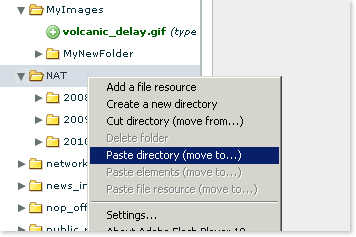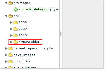 ... and check that your directory has in effect changed place - the MyNewFolder directory has moved from the MyImages folder to the NAT folder: