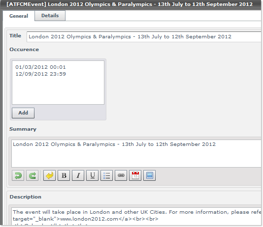 As you can see, this entity presents two edition tabs - General and Details - which are described in the next section.