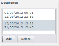 An Occurence consists of a pair of time stamps (date and hour), the first one expressing the start of the period, the second one the end of the period.