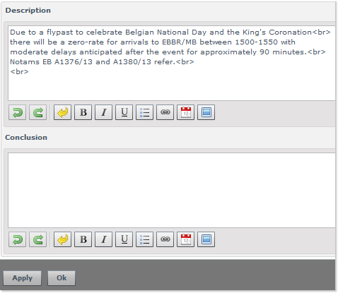 These are two text areas which you may complete to provide a Description for the item, and if relevant, a Conclusion as well.