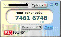 RSA SecurID software token is a software-based one-time password authentication method of protecting network resources, typically used for remote access. It is a small independent program that runs on the PC and that generates every minute a random number called the token code. The SecurID software licenses are bought from RSA Security Corp, therefore we refer to RSA SecurID rather than Network Management SecurID.